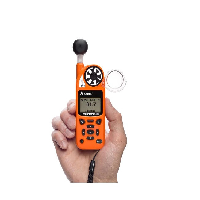 Product Overview:The next generation of WBGT and environment monitoring is here with the Kestrel 5400 Heat Stress Tracker.The Kestrel 5400 is a trusted and accurate handheld, portable, WBGT (Wet Bulb Globe Temperature) measurement tool and environmental data logger. No need for distilled water, bulky globes, complicated setup or expensive equipment. Getting accurate measurements couldn’t be easier: just hold the Kestrel Heat Stress Tracker in the area of interest for both instantaneous and average WBGT measurements. Set the appropriate WBGT thresholds for flag warnings and the loud buzzer, bright LED beacon and on-screen warnings provide instant notification of dangerous conditions. The Kestrel 5400 even comes preprogrammed with several athletics, industrial, and military guidelines to further ease the set-up process. Unlike other WBGT meters on the market, the Kestrel 5400 is a full-featured weather meter as well. Measure wind speed, maximum wind gusts, temperature, humidity, pressure, wind chill, density altitude and more. No matter what your activity, the Kestrel 5400 provides insight into the critical conditions affecting safety, performance and success. The Kestrel 5400 with LiNK wireless data communication adds a compass for tracking wind direction as well, expanding its usability to include HAZMAT response, and even measuring headwind at the running track! The Kestrel 5 Series platform offers a large, high-resolution and contrast display with ease of font readability. It also includes a built-in dual color backlight, extra-strong polycarbonate lens, AA battery operation and optional LiNK iOS and Android wireless connectivity and app support. Like all Kestrel meters, the Kestrel 5400 is drop-proof, dust-proof, waterproof and able to withstand harsh environments without damage – so it can be used anywhere needed to keep athletes, workers, military personnel and animals safe from heat injury. A range of carry pouch options makes it even easier to take your Kestrel meter with you. Pair the Kestrel 5400 with the optional Kestrel Vane Mount for hands-free measurements over the course of the practice, training session or workday. And for maximum functionality, choose the Kestrel 5400 with LiNK to transmit live measurements to your phone or tablet when you’re within range. In addition to measuring the current environmental conditions, the Kestrel 5400 tracks and logs over 10,000 sets of time-stamped data. Your data log can be transferred to a iOS/Android device wirelessly with the LiNK wireless communication option and Kestrel LiNK app, or to a Windows/Mac device with either the accessory Kestrel LiNK Dongle or waterproof USB Data Transfer Cable (Both sold separately).