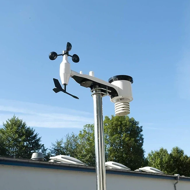 KEY FEATURES● Software for analyzing the stored data● Backlit 7 inch touch screen ● Weather forecast function ● Automatic time setting thanks to DCF ● Adjustable alarms when the measured value is exceeded ● Wind direction and wind speed ● Temperature and humidity display ● Solar panel on the outdoor unit to the supply |