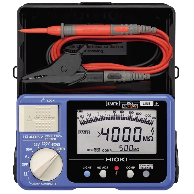 DESCRIPTION:Hioki insulation testers or megohmmeters feature all-in-one designs including built-in rugged cases and test lead storage compartments. The IR4057-50 is a 5-range, 50V to 1000V digital insulation resistance tester with bargraph, and delivers efficient functions and features to help shorten work time associated with field insulation testing.