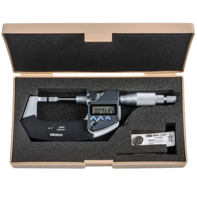 SPECIFICATIONS:● Range: 0-1"/0-25.4mm● Accuracy: +/- .00015" ● Resolution: .00005"/0.001mm ● Parallelism: .003mm / .00012" for models up to 75mm / 3" ● (3+R/100) microns for models over 75mm, ● R = max. range (mm) .00016" for 4" models ● Display: LCD ● Battery: SR44 (1 pc.), 938882 ● Battery life: Approx. 1.2 years under normal use  |