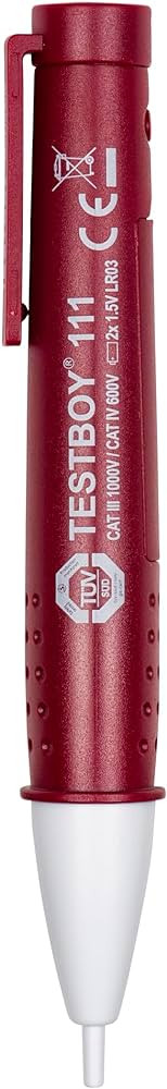 | The non-contact voltage testers Testboy 111 detects live conductors on cable connections, cable drums,sockets, switches, junction boxes etc. Due to capacitive measurement procedures, no current flow is required and interruptions can be indicated quickly and accurately. |