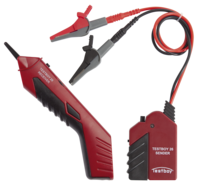 | The cable detector, Testboy 26, makes it easier to find cables in the wall and cable ducts. Here, an adapter or carrier signal from the transmitter is modulated by means of crocodile clips or the adapter to one end of the cable. The other end of the cable can then be found quickly and precisely with the receiver without contact or having to strip the cable insulation. Two-core cables can also be exactly identified in telecommunication and network technology. |