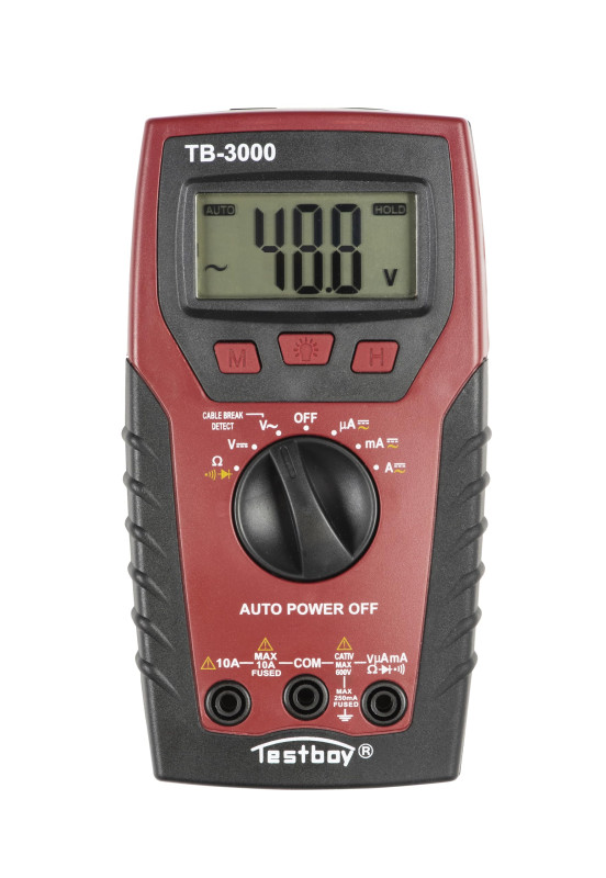 | Modern design, the latest technology and an expanded range of functions enable the Testboy 3000 digital multimeter to be used universally in industry and in trade. The break- and impact-resistant ABS housing and easy handling make it suitable for measurements under the harshest conditions. |