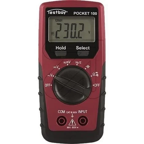| The Multimeter Testboy Pocket 100 is a further development of the popular Testboy Pocket. Due to its compact construction, many functions and easy operation, it is a valuable aid not only in handcrafts or in the industrial sector, but also for hobby electricians during all standard measurement tasks. |