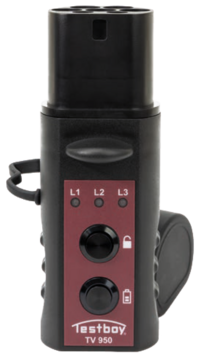 | The Testboy TV 950 is an EVSE charging station tester that checks the most important functions of the charging station in no time at all to ensure safe charging. This quick tester simulates a vehicle ready for charging, checks the plug lock and also shows the phases present via an LED display. |