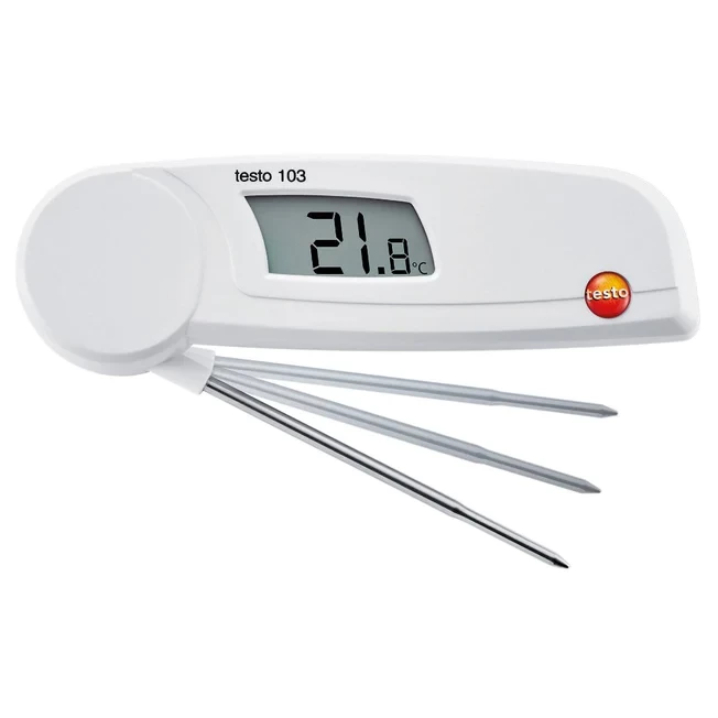 DESCRIPTION:Testo 103 Food Thermometer is just a little over 11 cm long, which makes it the smallest folding food probe thermometer in its class. It fact, it’s so small it fits in any shirt or trouser pocket, so it’s always with you when you need it and because the probe can be folded away when it’s not in use, there’s no need to worry that it might break off or cause any harm or damage. The testo 103 food probe thermometer can be used everywhere where food is sold, stored or processed. It is ideal for checking incoming goods, catering services, canteens and commercial kitchens, as well as cold storage rooms and supermarkets and for ensuring that temperatures are kept and quality and hygiene standards are met. The food thermometer’s especially thin but nonetheless rugged sensor tip makes it ideal for carrying out spot checks on liquid and semi-solid media where it leaves virtually no trace.