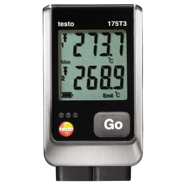 DESCRIPTION:The testo 175 T3 temperature logger is equipped with two connections for external thermocouple probes (type T or type K). This means the data logger is ideally suited for carrying out temperature recording on two channels. This is for instance necessary, if you want to check that a heating system is working properly. To do this, the temperature logger measures the flow and return temperature simultaneously. The data logger can likewise be used in industrial production control, if process temperatures need to be checked at different locations.