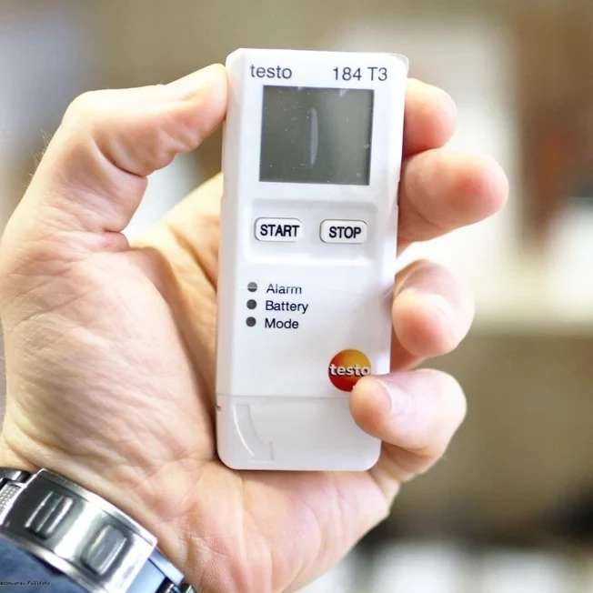 With the temperature data loggers testo 184 T3, you monitor the transport of sensitive goods such as pharmaceuticals, foods or electronics, over an unlimited period. More info on applications (link to tab Applications)