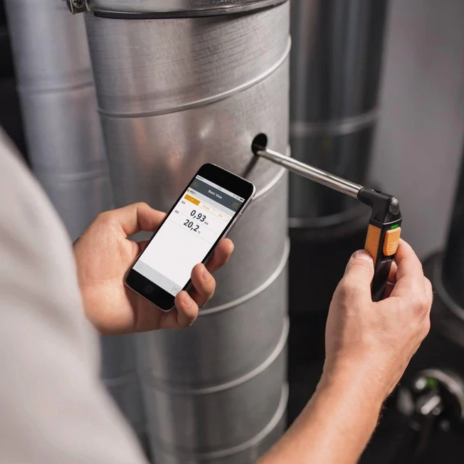 DESCRIPTION:No more surprises: the testo 405i thermal anemometer with smartphone operation from the Testo Smart Probes series is ideal for carrying out measuring tasks in ventilation ducts. It is easy to use the anemometer to determine air velocity, temperature and volume flows. The testo 405i is also suitable for measuring indoor air velocity. Practical when, for example, you want to locate non-airtight windows. Cooling capacities and heating outputs can also be calculated when used in conjunction with the testo 605i thermohygrometer.