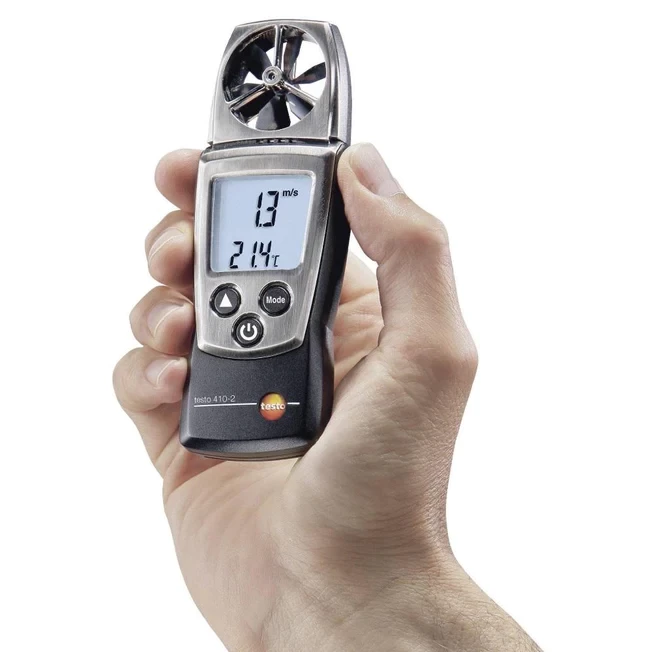 DESCRIPTION:Ideal for rapid measurement at ventilation grilles (air outlets) and for inspecting air conditions – also outdoors: use the testo 410-2 vane anemometer to measure humidity, as well as air velocity and air temperature. Dew point and wet bulb temperature, wind chill or Beaufort wind force: the anemometer can accomplish the calculation of all these parameters at the touch of a button.