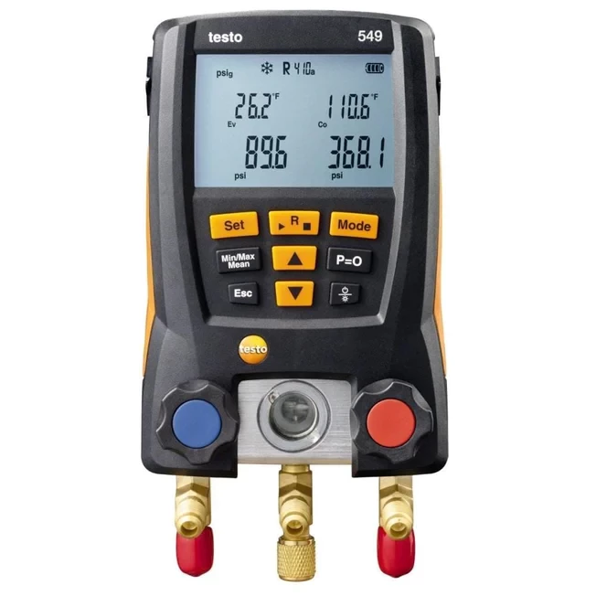 DESCRIPTION:The testo 549 digital manifold offers many advantages in comparison with analog manifolds: the instrument will make it easier for you to work on refrigeration systems and heat pumps. With its integrated temperature measurement and automatic calculation of superheating/subcooling, you can now do away with additional measurements and manual comparisons (when using an optional clamp probe). You can also use the manifold for 60 current refrigerants.