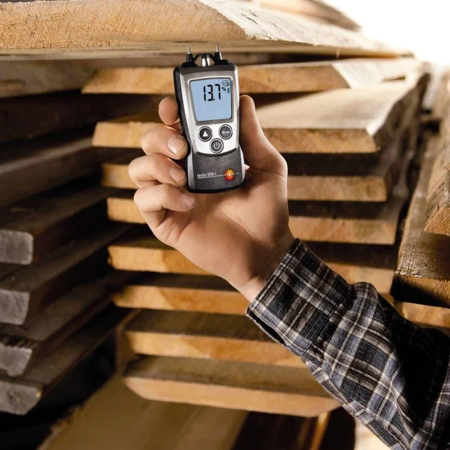 The testo 606-1 comes complete with a wide range of characteristic curves for wood and building materials. This allows the measured moisture content to be shown directly, as a weight percentage.