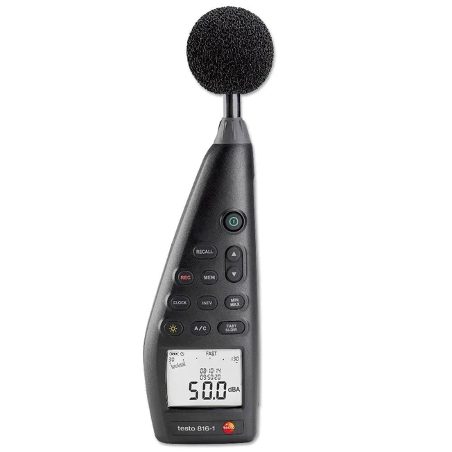 The testo 816-1 sound level meter is designed for checking and measuring noise levels in the workplace and in public places, using selective or long term measurements.