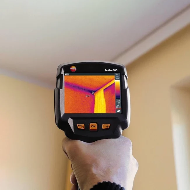 DESCRIPTION:With the testo 868 thermal imager, we have developed a thermal imager which makes work quicker and easier – without foregoing professional thermal imaging technology. You can generate error-free and objectively comparable infrared images using its handy functions. The IFOV warner, testo ɛ-Assist and testo ScaleAssist mean you can avoid measurement errors and not only effortlessly achieve optimum setting of emissivity (ɛ) and reflected temperature (RTC) for building thermography, but also of colour scale.