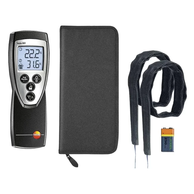 EQUIPMENT INCLUDES:● testo 922 temperature measuring instrument including batteries and calibration protocol● Two temperature probes with Velcro for surface measurements on pipes (item no. 0628 0020) ● Handy bag |