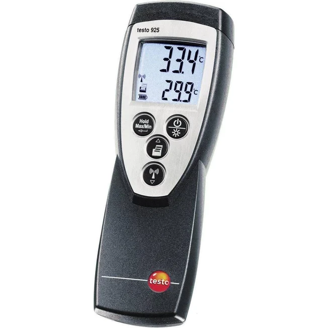 DESCRIPTION:The testo 925 temperature measuring instrument is our all-rounder for temperature measurement in heating engineering, the sanitation sector and refrigeration and air conditioning technology. Take advantage of the thermocouple technology of the attachable temperature probes (type K thermocouple) with this temperature measuring instrument. It enables fast temperature checks and a large temperature measuring range from -50 to +1000 °C (the measuring range is dependent on the probe selected).