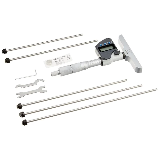 DESCRIPTION:Mitutoyo 329-250-30 Digital Depth Micrometer features interchangeable rods with lapped measuring ends provide a wide measuring range. Features a Ratchet Stop for constant force, a measuring rod clamp, SPC Data Output and comes in a fitted plastic case. This model has a measuring range of 0-150mm and 6 Rods |