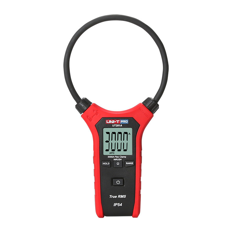 | Description: UT281 series can measure large currents in various harsh and hard to reach environments. They are designed with Rogowski flex coil and can test up to 3000A AC current. UT281A/C are from UNI-T’s Pro Line series, which meet IP54 and 2m drop proof requirements. Due to the ease in operation, accurate readings, stable performance and reliable quality, these flex clamps are ideal tools for electricians.