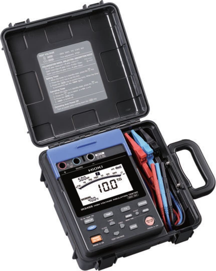 KEY FEATURES:● Measure insulation of high-voltage equipment (such as transformers, cables, and motors)● Wide testing voltage range, up to 5.00 kV from 250 V DC ● Wide measurement insulation range, up to 10 TΩ ● PI (Polarization Index) and DAR (Dielectric Absorption Ratio) automatically calculated / display ● Data memory function to reduce handwritten notes ● Bright LED luminous scale ● Extended operating temperature range of -10 ℃ to 50 ℃ |