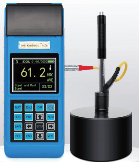 Features• Test at any angle, even upside down• Support “forged steel (steel) material, when using the D/DC impact device test forged” sample, can read HB value directly, without the need for manual checking table. • wide measuring range. It can measure the hardness of all metallic materials. Direct display of hardness scales HRB, HRC, HRA, HV, HB, HS, HL and three types of strength values immediately • Seven impact devices are available for special application. • Automatically identify the type of impact devices • Large capacity memory could store 600 groups (Relative to average times32~1) information including single measured value, mean value, testing data, impact direction, impact times, material and hardness scale etc. • Upper and lower limit can be preset. It will alarm automatically when the result value exceeding the limit. • Battery information indicates the rest capacity of the battery and the charge status |