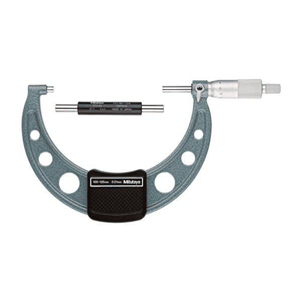 The Mitutoyo 103-145 Outside Mechanical Micrometer features a hammertone, green, baked-enamel finished frame and Carbide tipped measuring faces. This model includes a Ratchet Stop and a Measuring Range of 200-225mm.