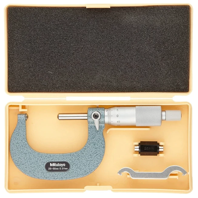 SPECIFICATIONS:● Range: 25-50mm● Graduations: 0.01mm ● Accuracy: +/- 0.003mm ● Mass(g): 240 ● Type: Spherical anvil and spherical spindle |