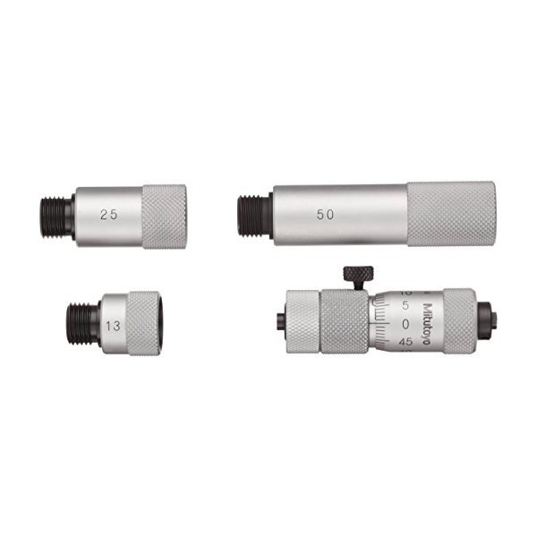 The Mitutoyo 137-204 Extension Rod Tubular Inside Micrometer - Metric has the following specifications:● Range: 50 - 1000mm● Travel of micrometer head: 13mm ● Accuracy: +/-(3+n+L/50)μm L=Maximum measuring length (mm) n=Number of rods Fraction rounded up ● Graduation: 0.01mm or .001" ● Extension rods: 13mm, 25mm, 50mm (2 pcs.), 100mm, 200mm (2pcs.), and 300mm |