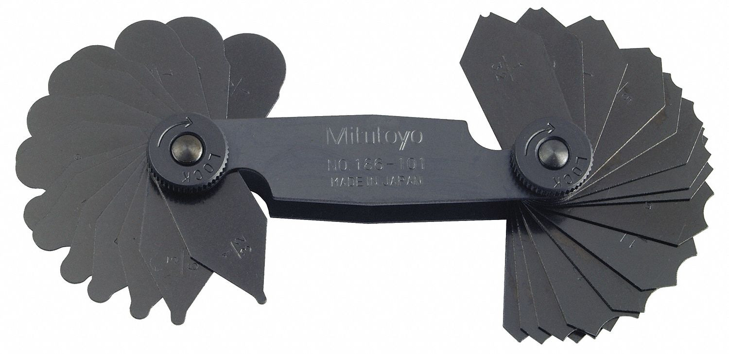 The Mitutoyo 186-101 Radius Gage has the following technical specifications:● Range: 1/32"-1/4"● Accuracy: +/- 0.002" ● Composition of Leaves: 15 pairs: 1/32"-1/4" by 64ths ● Remarks: 180 degree arc |