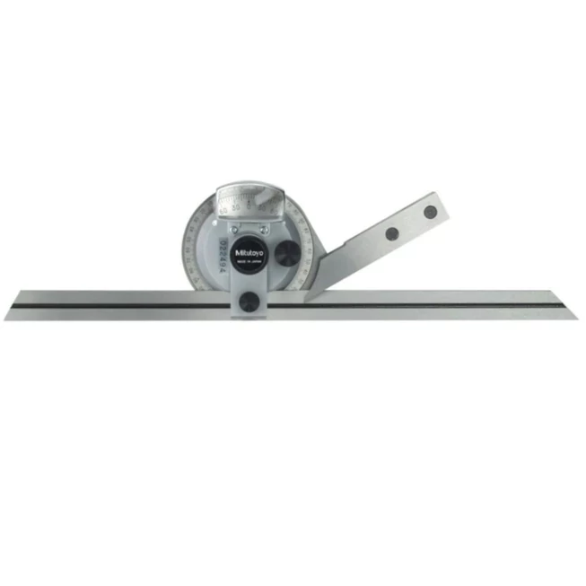 SPECIFICATION:● Blade edge angle : w/60° and 45° edges● Blade length : 300 mm ● Graduation : 5´ ● Circle division : 4 x 90° ● Inch-Metric : Metric ● Mass : 318 g ● Delivered : In a box |