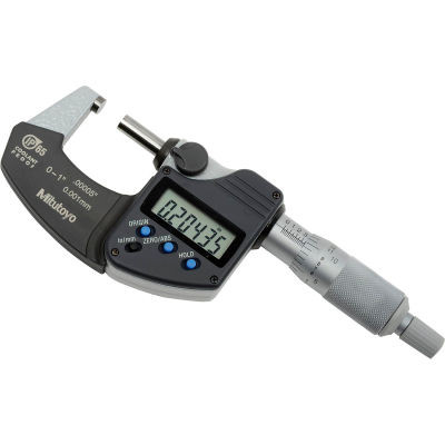DESCRIPTION:Mitutoyo new model 293-340-30 Digimatic micrometer features the NEW electromagnetic ABSOLUTE sensor, improving resistance to environmental conditions such as dirt, oil and water that can cause false readings. It has a measuring range of 1"/ 25.4mm with Inch/Metric conversion and a Ratchet Stop. This Series features IP65 level of protection, enabling use in environments exposed to cutting oil, etc., a Zero-set key for easy origin setting, Carbide tipped measuring faces and comes in a fitted plastic case. Also includes Automatic power on/off feature and data hold as well as low voltage and counting value composition error alarms. No SPC output |