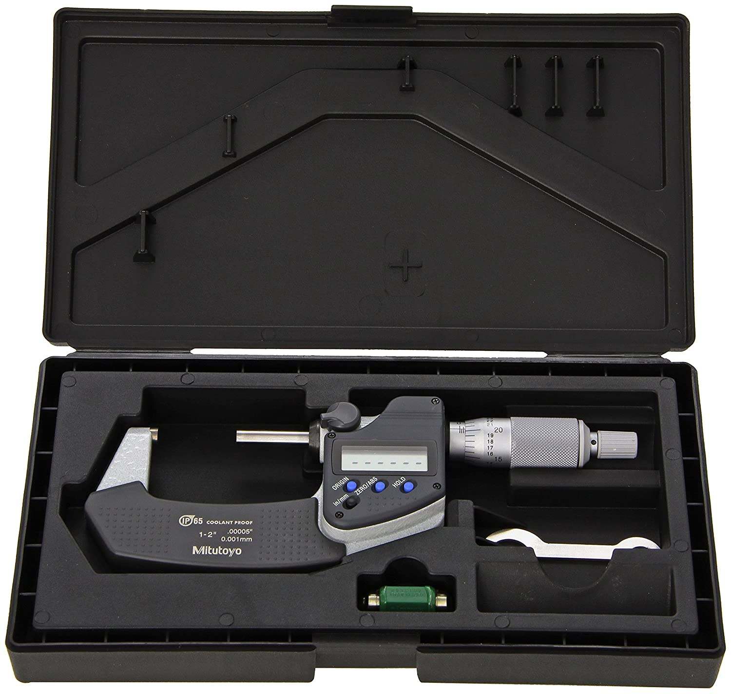 SPECIFICATION:●Range:1-2"/25.4-50.8mm●Resolution: 0.00005"/0.001mm ●Accuracy: +/- .00005" ●SPC Output: No ●Ratchet Stop ●Flatness:0.000012"/0.0003mm ●Parallelism:.00004"/.001mm for models up to 2"/50mm ●Measuring faces: Carbide tipped ●Display: LCD ●Battery: SR44 ●Battery life: Approx. 1.2 years under normal use (8 months: over 100mm models) ●Dust/Water protection level: IP65 |