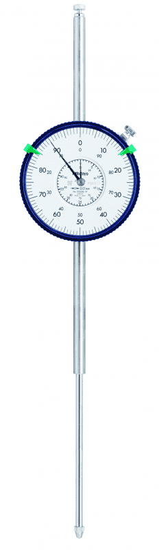 SPECIFICATION:● Range: 0-100mm● Graduation: 0.01mm ● Range/Rev: 1mm ● Dial Reading: 0-100 ● Type: with lug ● Accuracy: +/- 0.050mm ● Measuring force: 3.2N or less ● Stem/Shank: 8mm ● Contact Point: M2.5 x 0.45 Thread ● Shockproof Type: Y ● Jeweled Bearing Type: Y ● With Coaxial Revolution Counter Type: Y ● With Damper at Lowest Rest Point Type: N ● Type: ISO/JIS ● Can only use in a vertical position |