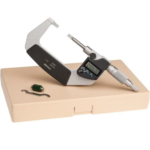 SPECIFICATIONS:● Range: 1-2"/25.4 - 50.8mm● Accuracy: +/- .00015" ● Resolution: .00005"/0.001mm ● Parallelism: .003mm / .00012" for models up to 75mm / 3" ● (3+R/100) microns for models over 75mm, ● R = max. range (mm) .00016" for 4" models ● Display: LCD ● Battery: SR44 (1 pc.), 938882 ● Battery life: Approx. 1.2 years under normal use |