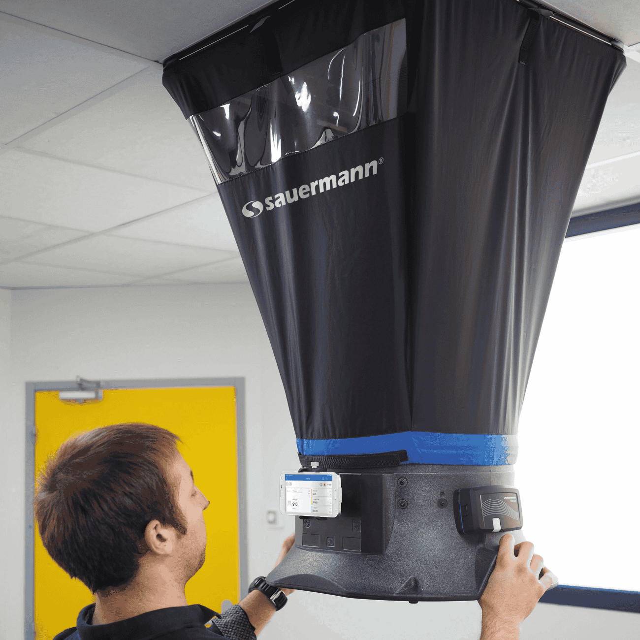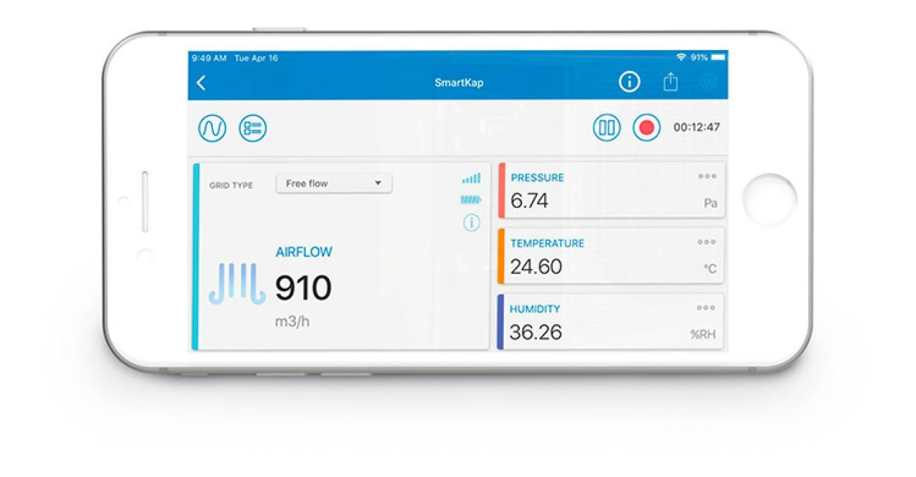 Air Flow Meter KitThe Sauermann DBM 620 Air Flow Meter is a multipurpose electronic air balancing instrument primarily used for efficiently taking direct air volume readings from air vents.The DBM 620 comes with 1 base including the measurement grid and a temperature and hygrometry probe, 1 removable measuring unit with Bluetooth connection, 1 hood of 2 x 2 ft (610 x 610 mm) with flow straightener and foldable frame, 1 sheath including the 4 frame fixing rods, 2 x 0.80 m of silicone tube, replacement hinges for frames, 1 transport case and 1 calibration certificate. Airtight HoodThe DBM 620 air flow meter comes in standard with a 2 x 2 ft (610 x 610 mm) hood. The hood is airtight and has a transparent viewing window that allows the user to see through the vent to ensure the hood is in the proper position.Measurement gridThe measurement grid is attached to the base and measures 24 different points throughout the surface of the flow area. Measurement is performed using a differential pressure sensor calibrated in atmospheric pressure and temperature and compensated in temperature.Operating principlesThe DBM 620 housing communicates with the smartphone or tablet via Bluetooth®. This allows measured values reading and viewing of reports directly on your mobile device screen, via the dedicated SmartKap mobile application. |