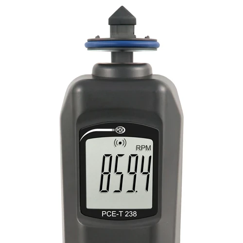 PRODUCT OVERVIEWThe tachometer PCE-T 238 is a battery-powered hand-held device that allows mobile use. The handheld tachometer can perform a contact measurement as well as a non-contact measurement. It is also possible to perform a measurement of the surface velocity. The handheld tachometer allows a measurement of up to 99,999 revolutions per minute. This measuring range is possible with contactless measurements with the optical tachometer. With the contact measurement, values up to 19,999 revolutions per minute can be determined, and the measurement of the surface speed offers the possibility of determining speeds of up to 1999.9 meters per minute. Such measurements can be started directly with the tachometer and do not require much preparation.The user does not have to pay attention to the direction of rotation when using the tachometer, as this device works independently. Thus, it is suitable for use in the care and maintenance of machines. Non-contact measurement also makes it possible to check the speed of hard-to-reach components. |