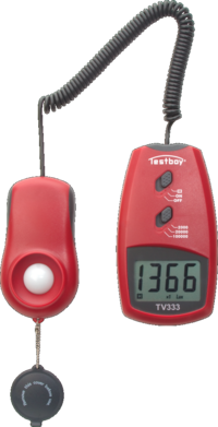 | Using the digital luxmeter, Testboy TV 333, the light strength can be recorded at a specified place – due to freely moving sensor, also at locations difficult to access. The silicon photo diodes behind a large diffuser enables precise measurements of up to 100.000 Lux. Thereby, for example, it is suitable for measurements in offices, conference rooms, classrooms and other public buildings. |