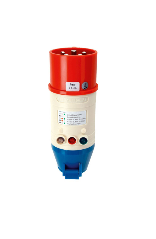| The Testboy TV 416/432(A) is a compact CEE adapter, comprising of a combination of CEE plug (16 A or 32 A), shockproof socket and self-closing flap cover, as well as integrated electronics for phase sequence measurement (only TV 416/432). In order to determine wiring errors, or to test the effectivity of the FI circuit breaker, it can be combined with the socket test devices Testavit Schuki 1A, 2K and 3A. |