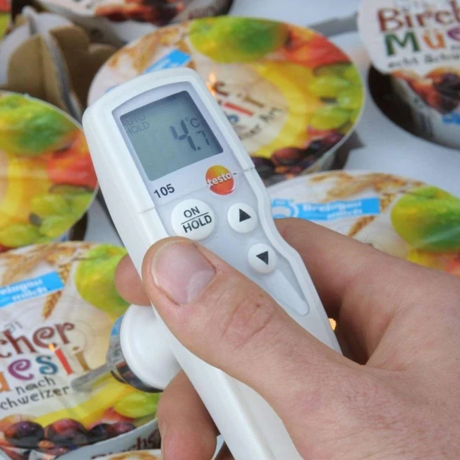 PRODUCT DESCRIPTION:The testo 105 digital food thermometer is designed for measuring the core temperature of frozen and non-frozen food. There are two tips available: a standard tip for non-frozen semi-solid media, i.e. meat, cheese and jellies and a longer 7.8 in. tip (optional) for frozen food.
