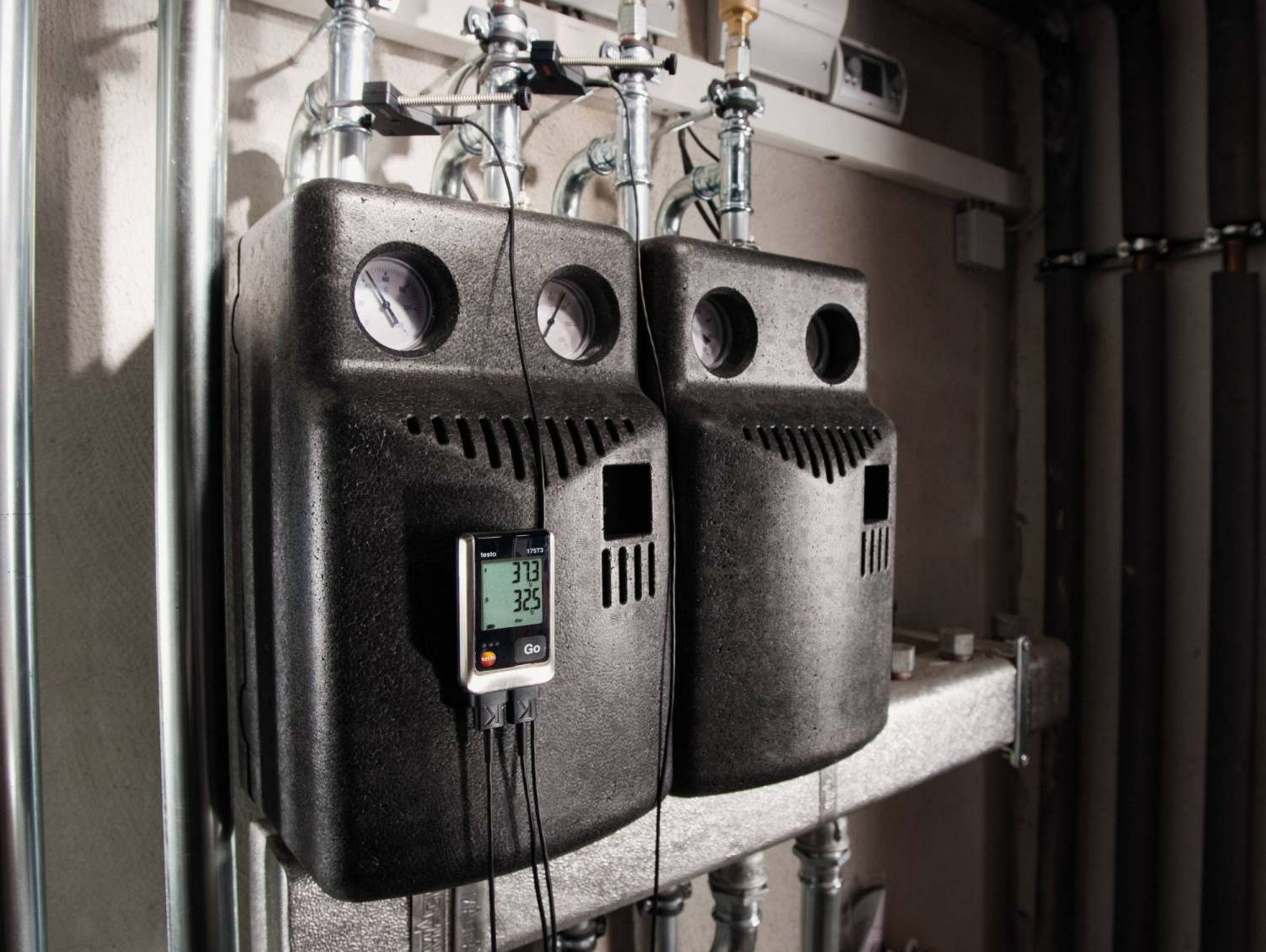 DESCRIPTION:The testo 175 T3 temperature logger is equipped with two connections for external thermocouple probes (type T or type K). This means the data logger is ideally suited for carrying out temperature recording on two channels. This is for instance necessary, if you want to check that a heating system is working properly. To do this, the temperature logger measures the flow and return temperature simultaneously. The data logger can likewise be used in industrial production control, if process temperatures need to be checked at different locations.