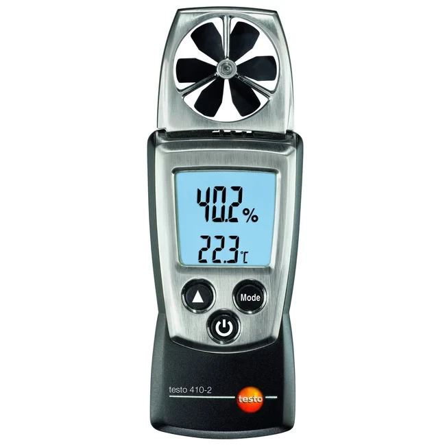 The testo 410-1 vane anemometer is impressive thanks to its practical pocket size and is ideal for fast check measurements. With a measuring range of 0.4 to 20 m/s, the anemometer can even be used for low flow speeds.