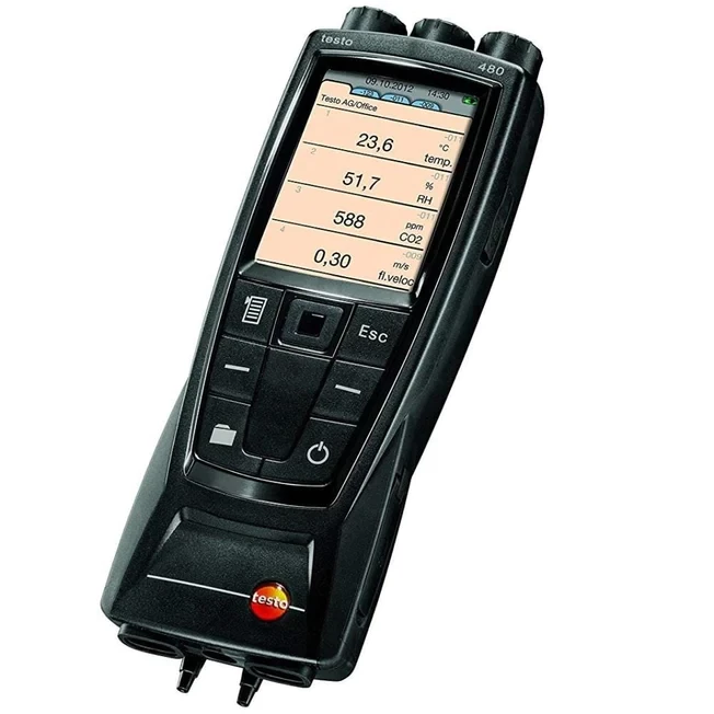 DESCRIPTION:The easy-to-use testo 480 is a high-precision digital temperatur humidity and air flow meter which allows you to measure, analyze and log all relevant ventilation and indoor air quality parameters with only one device.
