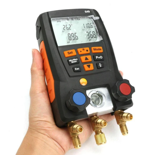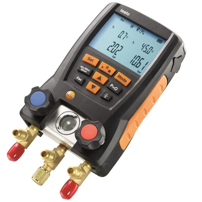 DESCRIPTION:The testo 549 digital manifold offers many advantages in comparison with analog manifolds: the instrument will make it easier for you to work on refrigeration systems and heat pumps. With its integrated temperature measurement and automatic calculation of superheating/subcooling, you can now do away with additional measurements and manual comparisons (when using an optional clamp probe). You can also use the manifold for 60 current refrigerants.