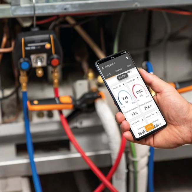 DESCRIPTION:The testo 550i app-controlled digital manifold with Bluetooth ®, 2-way valve block and sturdy hook offers extensive measurement technology in an exceptionally compact format. Use this extremely robust manifold to carry out your everyday work on refrigeration and air conditioning systems and heat pumps wirelessly, with ease and reliability. All using the testo Smart App on your smartphone or tablet.
