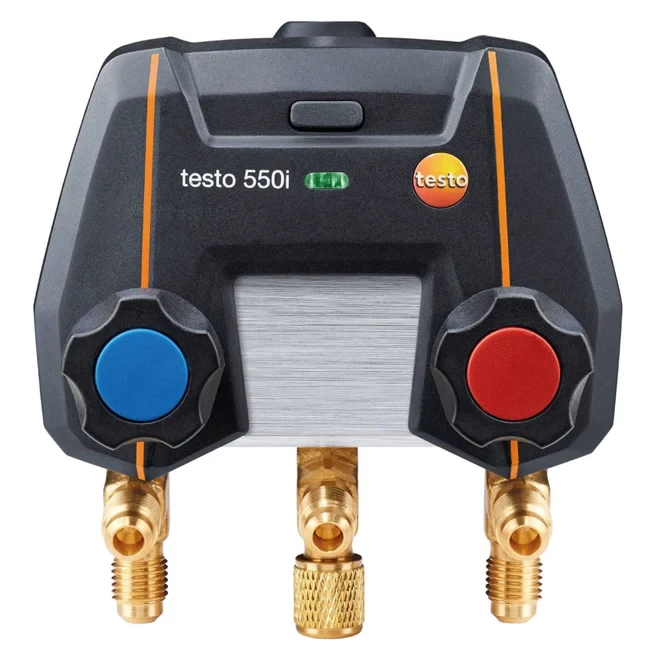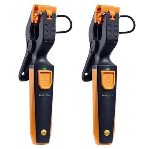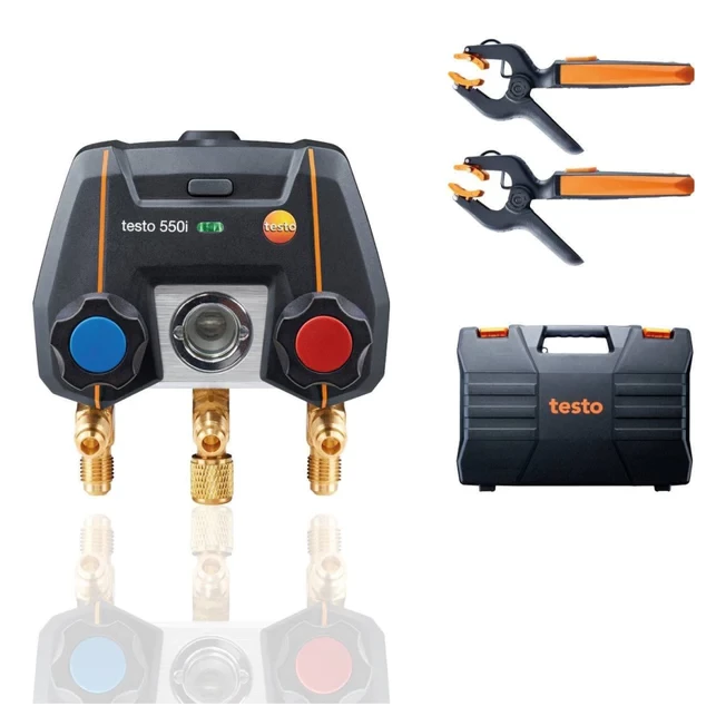 DESCRIPTION:kit for app-controlled, wireless measurements and digital documentation on your smartphone. You will get the testo 550i app controlled digital manifold with Bluetooth, 2-way valve block and sturdy hook, two testo 115i wireless clamp thermometers (Bluetooth, NTC) and a robust transport case. For other wireless measurements, the optional Testo Smart Probes for temperature, humidity and vacuum are the perfect addition. You’ll be ideally equipped to carry out your measuring tasks on refrigeration and air conditioning systems and also heat pumps.