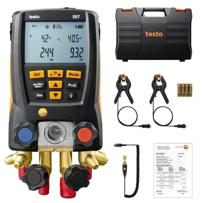 DESCRIPTION:Are you primarily entrusted with the commissioning or maintenance of refrigeration systems or heat pumps? If so, the testo 557 is the ideal digital manifold for you: like the testo 550, this digital manifold replaces multiple tools in the refrigeration industry and can be connected to a practical app. As well as the features of the testo 550 manifold, the testo 557 offers a high-precision external Pirani gauge for vacuum measurement: this enables the quick, safe evacuation of refrigeration systems and heat pumps.