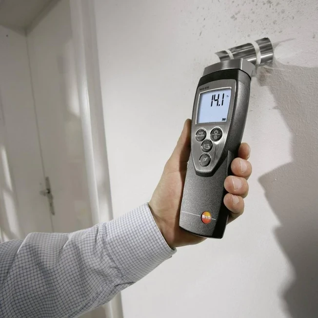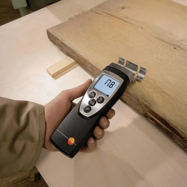DESCRIPTION:The testo 616 professional moisture meter provides you with a precise and non-destructive means of measuring moisture in wood and building materials, and of monitoring the drying process after water damage. Simply select the characteristic curve, and place the meter’s measuring claw against the material’s surface. The meter shows the moisture content as a weight percentage compared to the dry weight. Press the relevant key to save the reading to your meter. Although the measuring claw only comes into contact with the surface, wall or flooring, it is able to determine the moisture content of the wood or other material down to a depth of 2 in.