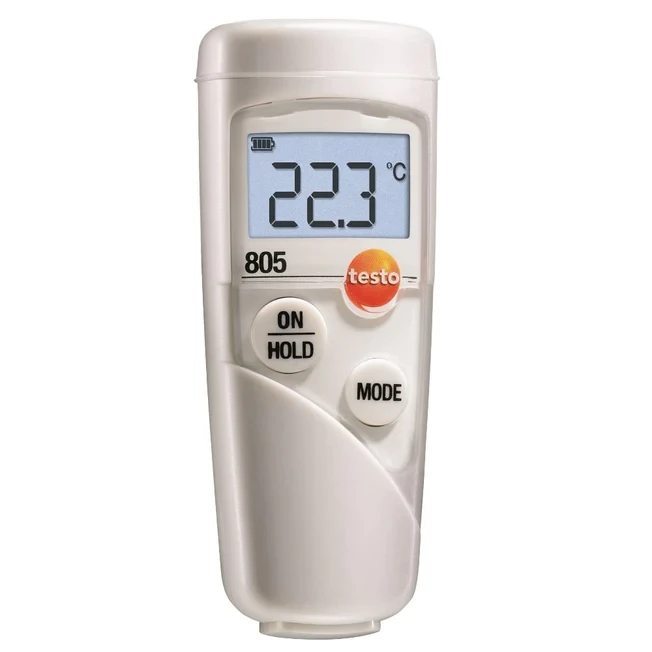 DESCRIPTION:The testo 805 mini infrared thermometer is perfect anywhere needing a quick surface temperature check: for example, you can use it for food controls in supermarkets to record the temperature of incoming goods, or to scan entire refrigerated sections. However, it is not only in the food sector (industry and retail), but also in building services that the Testo infrared thermometer performs reliably.
