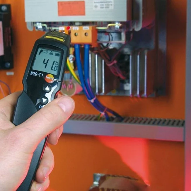 The Testo 830-T1 IR thermometer with laser measurement spot marker and 10:1 optics is suitable for non-contact surface temperature measurements in any industry.