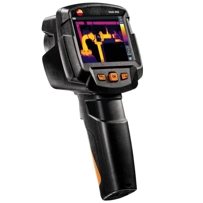 DESCRIPTION:With the testo 868 thermal imager, we have developed a thermal imager which makes work quicker and easier – without foregoing professional thermal imaging technology. You can generate error-free and objectively comparable infrared images using its handy functions. The IFOV warner, testo ɛ-Assist and testo ScaleAssist mean you can avoid measurement errors and not only effortlessly achieve optimum setting of emissivity (ɛ) and reflected temperature (RTC) for building thermography, but also of colour scale.
