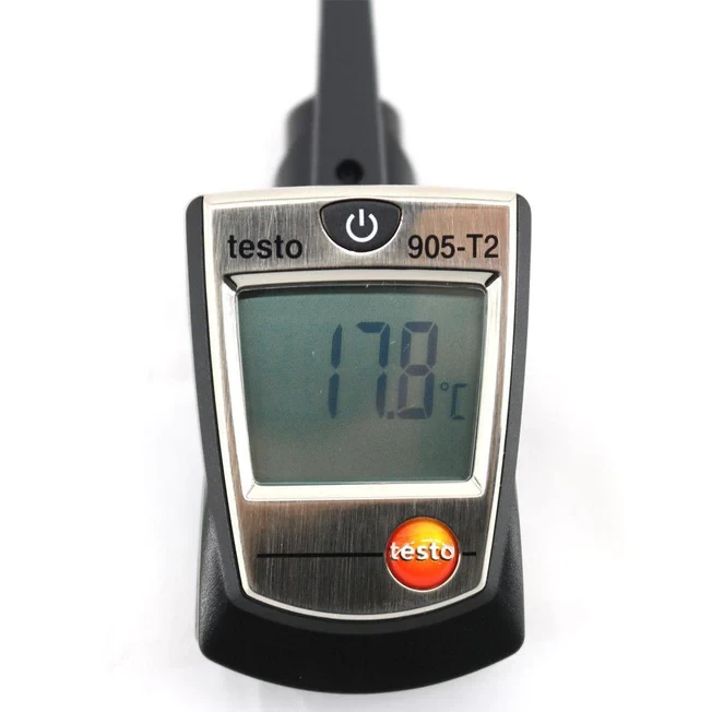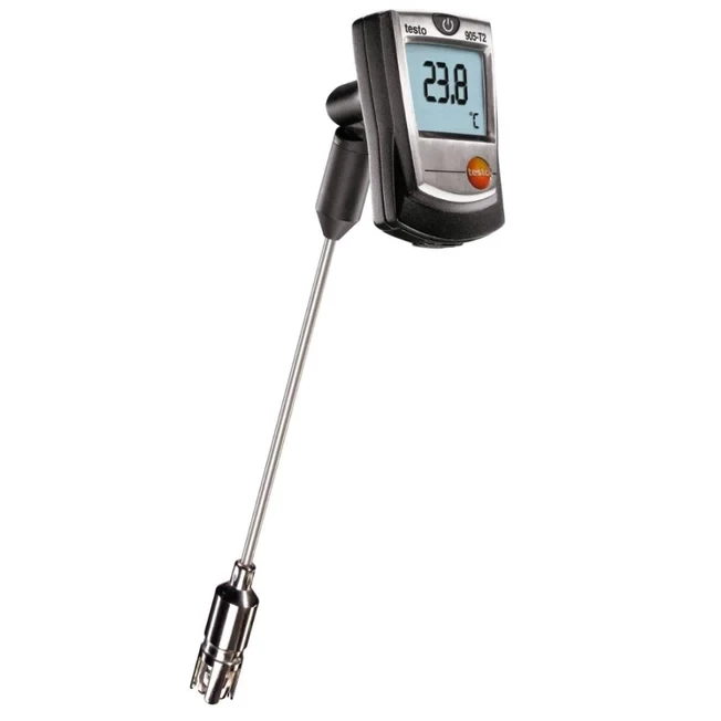 DESCRIPTION:The testo 905-T2 surface thermometer provides you with the best piece of equipment for dealing with temperature measurements on both smooth and uneven surfaces. This is because its temperature probe (type K thermocouple) features a measuring head with sprung thermocouple strip that adjusts to the surface. This method prevents the temperature probe from tilting – and therefore false measurement results. Another advantage of the temperature probe (type K thermocouple) is that its sprung thermocouple strip takes on the temperature of the object being measured very quickly. The temperature measuring instrument consequently achieves great accuracy and an impressively fast response time.